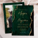 Convite Modern Emerald Green Agate Script Photo Wedding