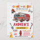 Convite Modern FireFigher truck Birthday with image