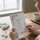 Elevate your wedding stationery with this exquisite wedding details card, featuring a delicate blush floral watercolor design. The top corner is adorned with a charming arrangement of soft pink, peach, and blue blossoms, creating a romantic and whimsical feel. This card is perfectly complemented by a clear QR code on the back, seamlessly guiding your guests to your wedding website for more information. The textured background adds a touch of rustic elegance, making it an ideal choice for a garden or bohemian-themed celebration.