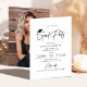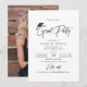 Black and white simple graduation invitation with modern hand written signature script and hand drawn grad cap, personalized photo on the back, simple and unique. Custom it with your own photo and grad party information.