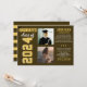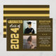 Lindo Modelo de Invitacion de Graduado con estilo de graduado de secundaria con esta invitación de graduacióncon 2 fotos e invitación de fiesta. La tarjeta "Ahora y después", de dos caras, muestra dos fotos del Graduado (una foto actual y otra más antigua de su primer día de escuela) con un diseño simple y masculino con letras inspiradas en jersey deportivo. Los colores Cafe y dorado, hacen de esta invitacion una linda invitacion elegante para tu graduacion de Hombres o Mujeres **Consejo de fotos: recorta tus fotos en una forma cuadrada antes de subir.