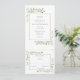 Um convite de casamento tudo em um com folhas de verde botânico em aquarela elegante e uma moldura dourada chique. O convite inclui um cartão de RSVP que pode ser destacado e detalhes das informações dos convidados. Criado por Thisisnotme©