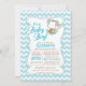 Modern bold & bright safari baby shower invitation featuring a cute brown & blue monkey for a boys baby shower.  Our contemporary jungle invite is set on a blue & white stripe chevron background and has a matching back for an extra special touch.  Perfect for a sweet jungle safari animal themed baby shower.