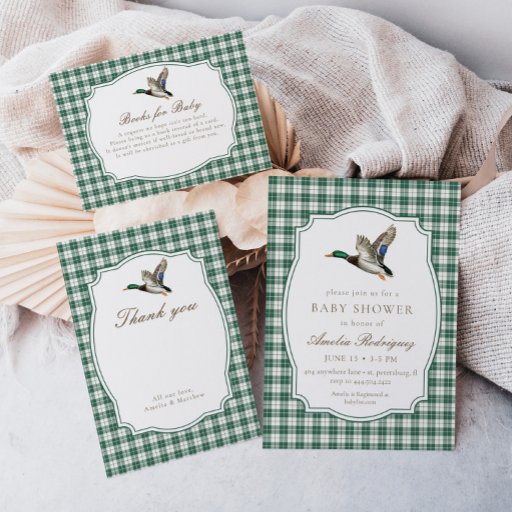 Modern Green Gingham Mallard Duck Baby ShowerCriado por S. Potter