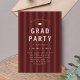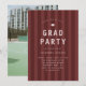 Modern graduation party invitation with a sporty, maroon red striped background, ideal for athletes.
