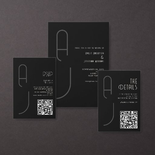 Convite Modern Matte Monogram Minimal Wedding Black White