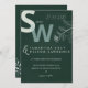 This minimalist wedding invitation features a sophisticated botanical design in deep forest green, exuding natural elegance and modern charm. The large monogram initials add a bold, contemporary touch, while delicate white leafy illustrations frame the date, creating a refined, nature-inspired aesthetic. Perfect for simple weddings and eco-friendly celebrations, this minimalist wedding stationery beautifully balances greenery, typography, and understated luxury — ideal for couples who love modern simplicity blended with organic botanical beauty.