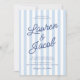 Convite Modern Minimalist Coastal Blue Stripes Wedding