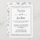 The design features a crisp white cardstock framed by a clean, bold black border that creates a professional, "gallery-style" look. The couple's names, "Taylor and Jordan," serve as the focal point, showcased in a stunning combination of classic serif and romantic flowing script typography. This versatile invitation is ideal for urban lofts, industrial warehouse venues, or high-end minimalist ceremonies.