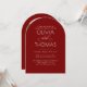Set the perfect tone for your celebration with this romantic burgundy red engagement party photo invitation. The sleek arched design, deep red background, and flowing calligraphy create an elegant, intimate feel, while the option to feature a photo on the back adds a personal and modern touch of luxury.