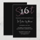 Convite Modern Minimalist Sweet 16 Black Pink Birthday