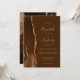 The left-hand edge of this elegant modern wedding invitation features a mocha brown watercolor agate border trimmed with faux gold glitter. The customizable text combines gold-colored handwriting, copperplate and italic fonts on a brown background. The reverse side features a matching mocha brown and gold agate design.