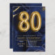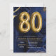 Convite Modern Navy Blue and Gold 80th Birthday Invitation