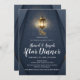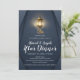 Convite Modern Navy Blue and Gold Glowing Lantern Iftar
