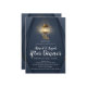 Host a sophisticated and spiritual evening with this modern Navy Blue and Gold Iftar invitation. The design features a deep navy blue background with a subtle geometric pattern, highlighted by a single, magnificent glowing lantern that radiates warmth and light. Elegant gold Arabic calligraphy and clean white typography create a minimalist yet luxurious aesthetic. This template is perfect for formal community Iftars, corporate Ramadan dinners, or intimate family gatherings. Fully customizable, you can easily update the names, date, and location to create a professional and welcoming invite for your guests.