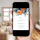 Convite Modern Navy Burnt Orange Florals QR Code Wedding