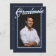 Modern one photo graduation announcement featuring a postage stamp–style frame, classic navy color palette, and clean modern typography. Inspired by vintage postal design, this layout combines traditional structure with a contemporary editorial feel.