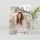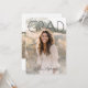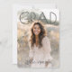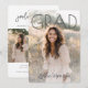 This graduation announcement design features a bold, modern layout with a large “GRAD” headline layered over a full-bleed portrait photo, creating a clean and confident look that puts the graduate front and center. The front design feels timeless yet contemporary, making it perfect for both high school and college graduations. On the back, the design includes space for graduation party details along with two additional photos, allowing for a personalized mix of celebration information and memorable moments. The overall style blends simplicity with warmth, making it ideal for sharing graduation news while inviting friends and family to celebrate this milestone.