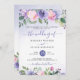 Modern periwinkle purple and pink watercolor floral wedding invitation, with a very light peri wash textured background. Customize names, dates, and information.