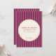 Celebrate the bride-to-be with this chic bachelorette weekend invitation featuring elegant plum and beige vertical stripes. The central cream-colored oval elegantly frames the text, announcing 'the brides Last Weekend Out as a Miss!' and details of the bachelorette weekend. This design is perfect for a sophisticated and stylish send-off before the big day, setting a refined tone for the festivities. Ensure all your guests have the essential information for this special occasion.