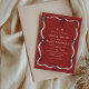 Modern stylish red wedding invitation with hand draw frame and little black bows, modern calligraphy. Classy and elegant, simple and modern invitation.