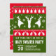 Convite Modern Red and Green Reindeer Ugly Sweater Party