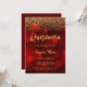 Convite Modern Red Bokeh Dourado Glitter Quinceanera