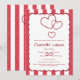 This baby shower invitation features a red chalk stripe background and triple red hearts. You can personalize the text and change the color by clicking the "Personalize" button. Have a lovely day, my friend!