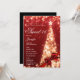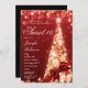 Elegant & modern Sweet Sixteen Birthday Party Invitation template with Red Gold Sparkling Christmas Tree & Ribbon. Impress your friends with this sophisticated and elegant invitation design.