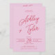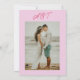 Simple magenta red and pink retro minimal design wedding invitation doulble sided with custom photo and wedding logo monogram. Unique elegant handwritten names script. Suitable for spring summer fall or winter modern chic weddings.