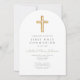 Personalizado Sage Verde Stripes Cruzam Primeiro Convite De Arca Comunitária. Parte do Elegante Sage Green Religian First Communion Suite com artigos de papelaria e acessórios do partido disponíveis.
