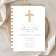 Convite Modern Sage Green Stripes cruza Primeira Comunhão