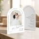 Minimalist the night before rehearsal dinner invitation features modern script and chic arch frame with couple's photo in black and white, elegant and simple, great for modern classy wedding.