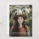 A Modern Script Graduate Simple Photo Graduation Announcement card with a handwritten font, with name and graduation details. The back has two photo placements with additional details. Click the edit button to customize this design.