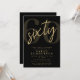 Convite Modern Script Sixty Black Gold 60th Birthday Party