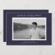 This modern photo graduation announcement card features a clean, editorial layout with a classic postage stamp–style frame that highlights a single graduation portrait. The structured composition and refined typography create a timeless, polished look that feels confident and understated.