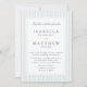 This invitation features a clean geometric frame in a soft light blue tone that adds a fresh and calm feel to the design. Vertical stripes introduce subtle texture, while the minimal border highlights the text in a modern way. The light blue palette keeps the layout airy and refined.