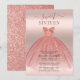 Com um bonito vestido cor-de-rosa pincelado e uma falsa brilha de ouro rosa com a escrita moderna e a tipografia popular, este convite de aniversário é perfeito para uma princesa que comemora seu doce aniversário de 16 anos. Substitua facilmente os detalhes da parte clicando no botão "Personalizar".
