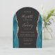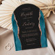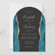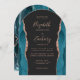 Convite Modern Teal Rose Gold Agate Dark Arch Wedding