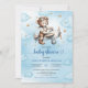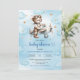 Convite Modern Teddy Bear Pilot Blue Brown Boy Shower