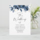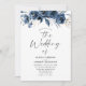Convite Modern Trendy Navy Blue Watercolor Floral Wedding