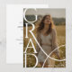 Announce a special graduation celebration with this modern photo graduation invitation. The design features a bold vertical “GRAD” typography overlay that creates a stylish and contemporary look. The large elegant letters frame the graduate’s photo beautifully, making the image the main focus of the design. A soft flowing line element adds a subtle artistic detail while maintaining a clean and minimalist style.