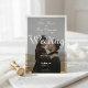 Ideally suited for the modern urban couple planning a sophisticated city celebration. This design blends industrial chic vibes with high-end romance, featuring a stunning full-photo layout that puts your love story front and center.This design features a vertical, full-bleed photography background framed by a thin white line border. All text appears as a crisp white overlay for contrast. The couple's names are displayed in flowing, formal calligraphy script near the center-bottom, followed by the word "Wedding" in large, bold display serif typography. Event details are presented in a clean, classic serif font, completing the minimalist, industrial chic aesthetic. Easy to customize with your details.