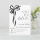 Announce your wedding in style with this chic and modern bow save the date invitation. Featuring a bold, oversized ribbon illustration and refined typography, this design strikes the perfect balance between contemporary minimalism and timeless elegance. The graceful script paired with clean, classic lettering creates a sophisticated first impression that feels effortlessly polished.