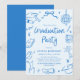 Convite Modern Whimsical Hand Drawn Blue Graduation Party