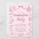 Convite Modern Whimsical Hand Drawn Pink Graduation Party