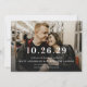This modern yet elegant save the date announcement features a horizontal photo background with your wedding date and text in white. You can customize this design even further by changing the backer color and/or adding another photo or additional text to the backer.