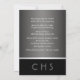 Convide seus convidados de 10 turmas em estilo com este convite de cartas planas modernas. Apresentando um fundo preto brilhante na parte inferior por uma faixa de prata negra e falsa. Uma camada de monograma desbotada para seu segundo grau adiciona um toque de elegância. Personalize todos os seus detalhes de celebração na frente e no verso do cartão. Desenhado pela artista ©Susan Coffey.