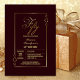 Convide seus amigos e entes queridos para a sua 50ª festa de aniversário com este moderno convite de aniversário burgundy enquadrado em ouro.