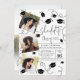 Ela fez isso!! Comemore o formando com este simples e legal convite para a graduação de 4 fotos, preto e branco, preto e branco, com a caligrafia da moda, com boné de formatura e confete.
